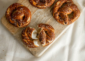 Pues básicamente son unos espectaculares lazos de pan de Centroeuropa que se caracterizan por una fina corteza crujiente y muy tostada con un poco de sal gorda que los hace aún más crujientes y buenísimos 😍.